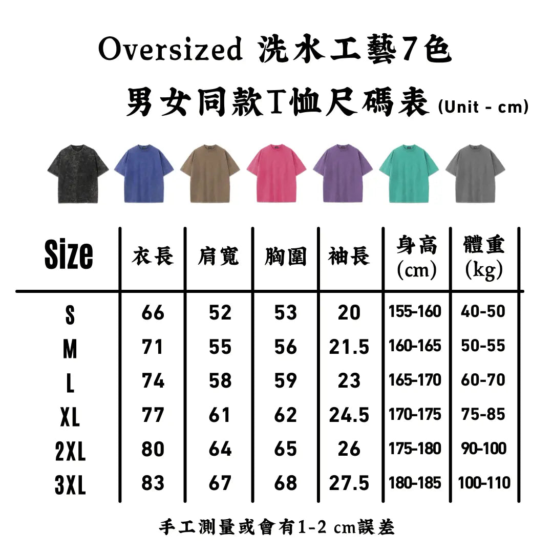 ∎ 洗水工藝T恤為Oversized尺碼,版型偏大,想貼身一點可選小一個碼