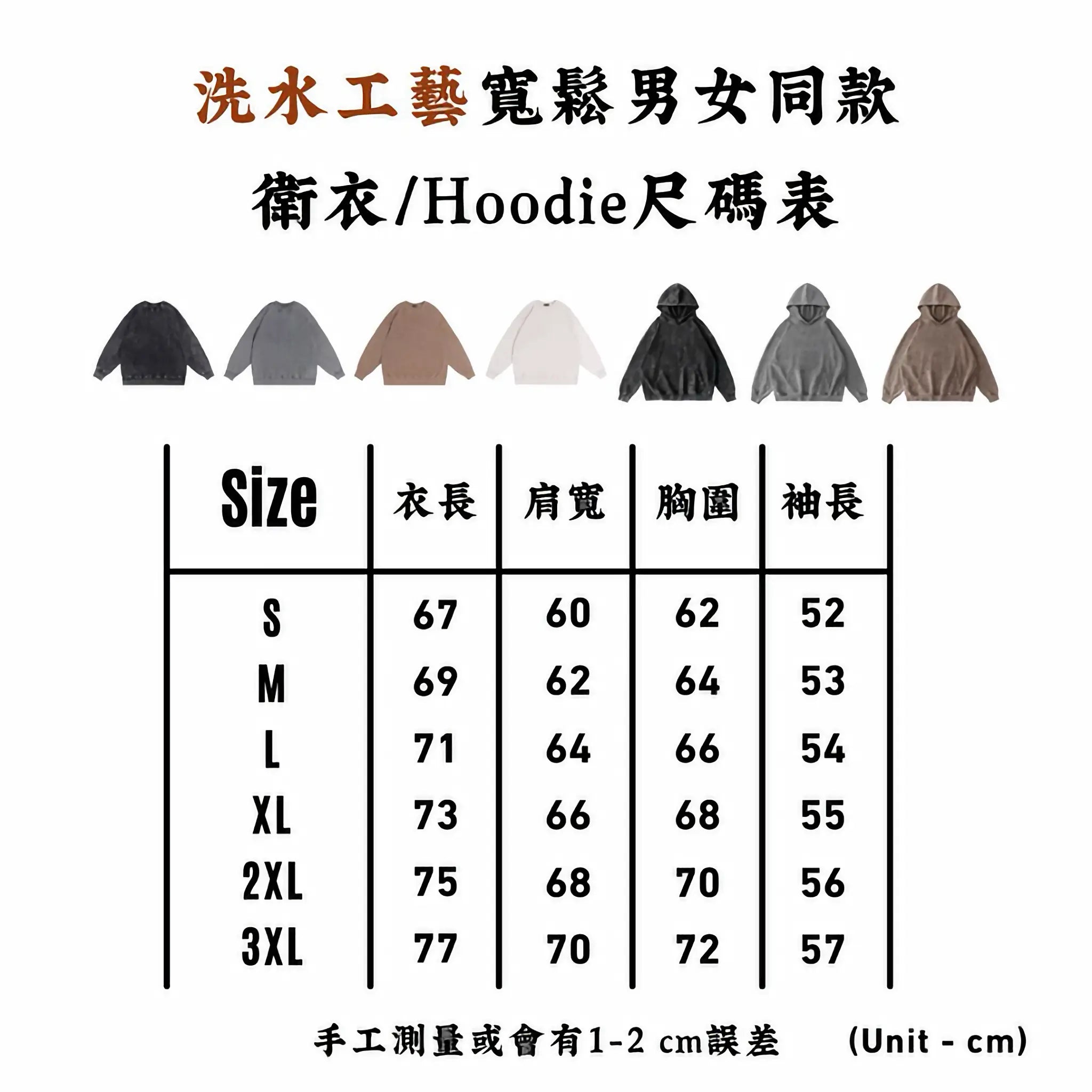 ∎ 洗水工藝衛衣/Hoodie為Oversized尺碼,版型偏大,想貼身一點可選小一個碼